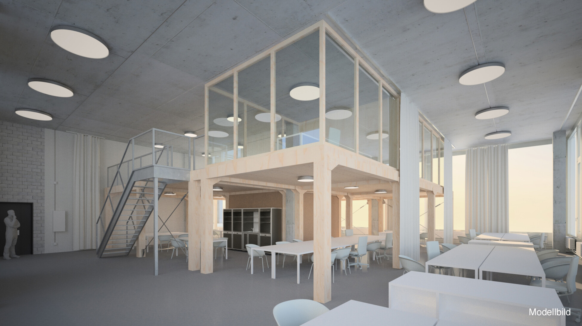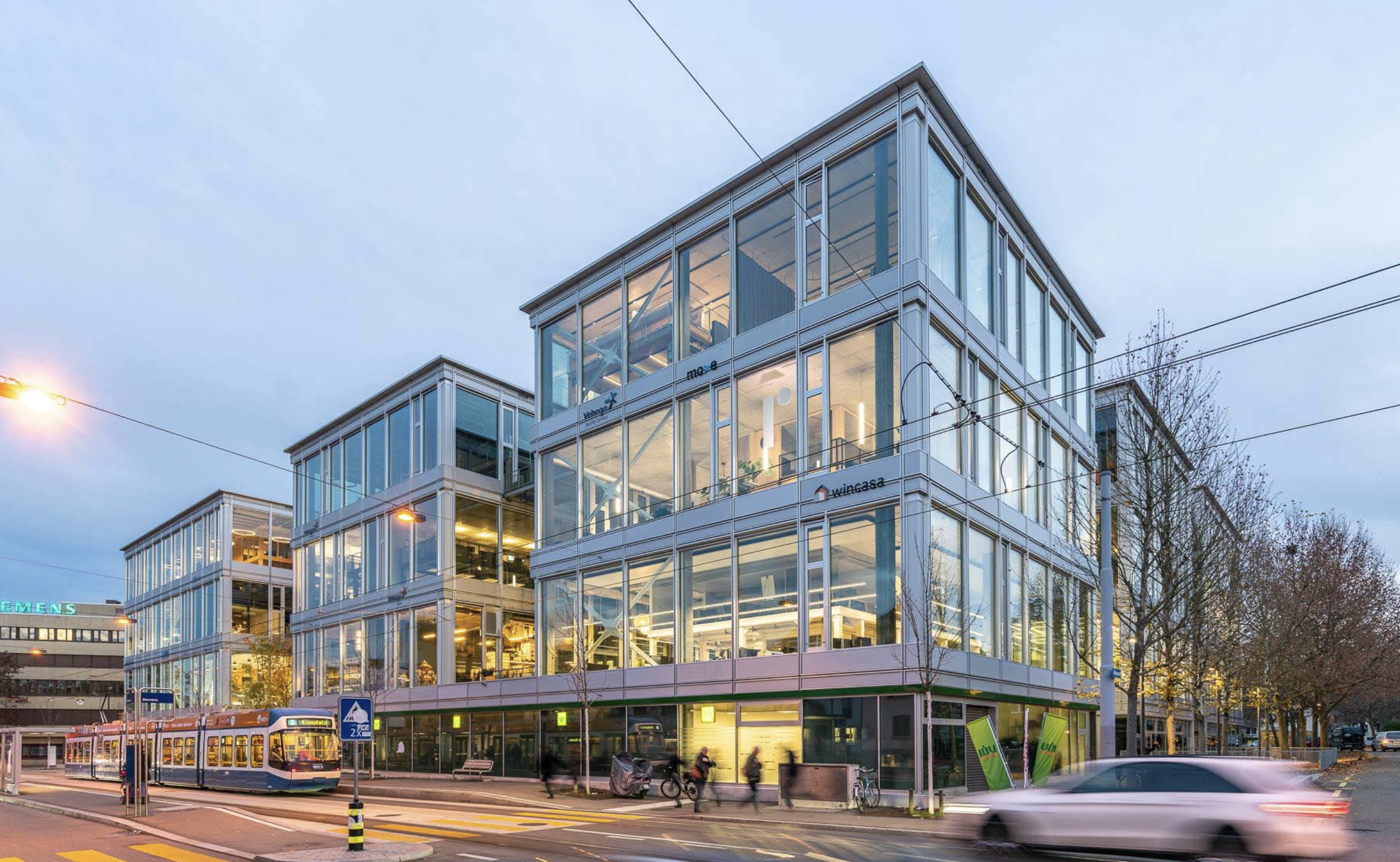 Die Konstruktion ermöglicht eine maximale Nutzung des Tageslichts, was nicht nur die Energieeffizienz steigert, sondern auch eine helle und freundliche Arbeitsumgebung schafft. Flexible Grundrisse und moderne Raumgestaltung ermöglichen eine optimale Nutzung der Innenflächen und schaffen eine inspirierende Atmosphäre.